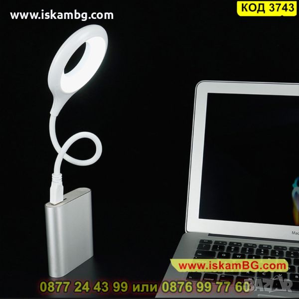 Кръглата лед лампа е подходяща за лаптоп или настолен компютър. Притежава и силиконово чупещо рамо се рамо до 360 градуса, като покрива голяма площ на осветяване, не трепти и не дразни очите. Подходяща е да се използва във всекидневна, библиотека, маса, бюро и където имате нужда. Захранва се с помощта на USB, с който може да се включи към външна батерия или директно към настолен компютър или лаптоп, както и към електрическата мрежа чрез допълнителен USB адаптер за 220V, който не е в включен в комплекта.