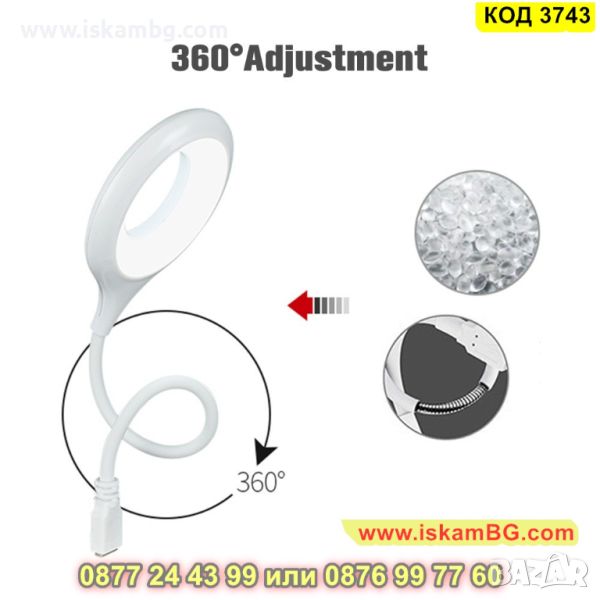 LED ринг лампа с чупещо рамо и USB - КОД 3743