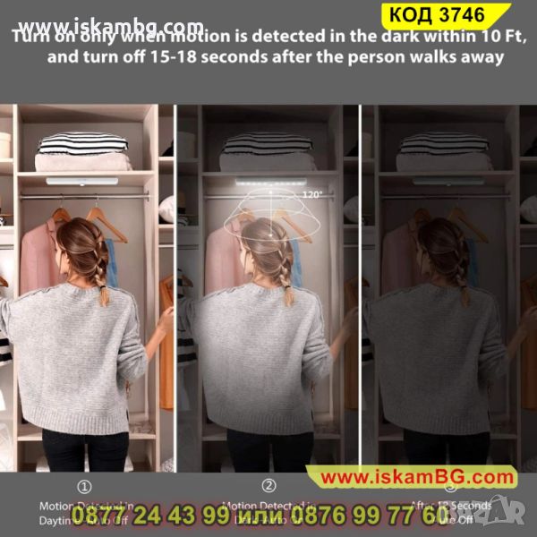 Сензорното устройство на тази лампа се включва когато няма друго осветление и засече преминаване на човек и се изключва автоматично при наличието на дръга светлина. Компактна, малка и лесно преносима LED лампата може да се вземе навсякъде с Вас.