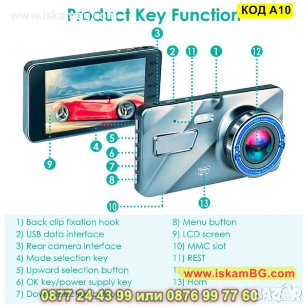 ✅ Камера за задно виждане - позволява ви да записвате какво се случва зад автомобила. Камерата е с вградени 4 светодиода