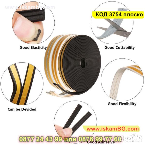 Ако искате да намалите шума или да спрете студения въздух да нахлува в помещението Ви зимата, а топлият лятото то тази самозалепваща лента е страхотно предложение.