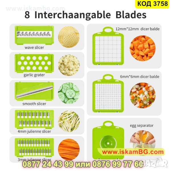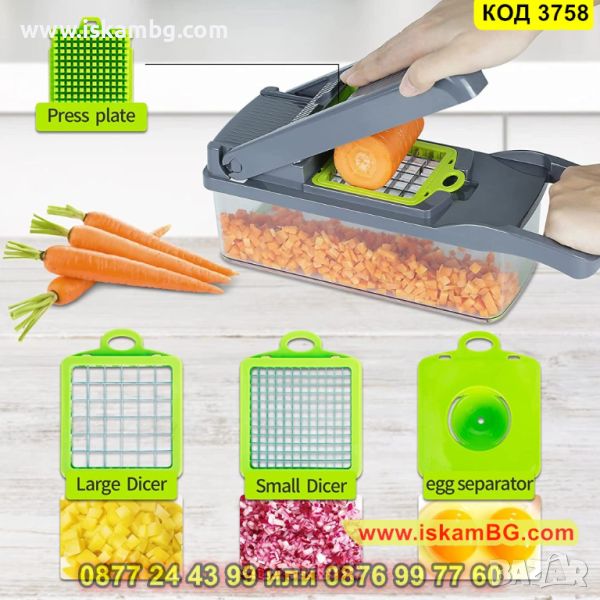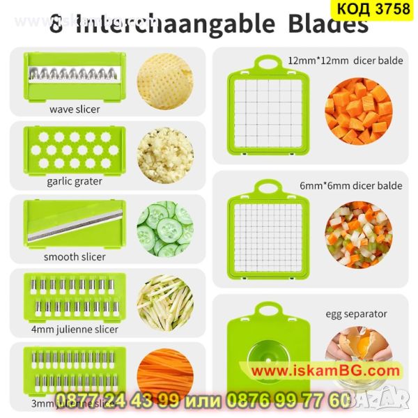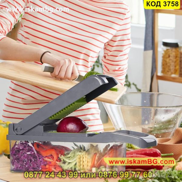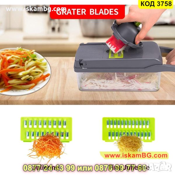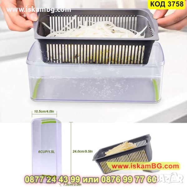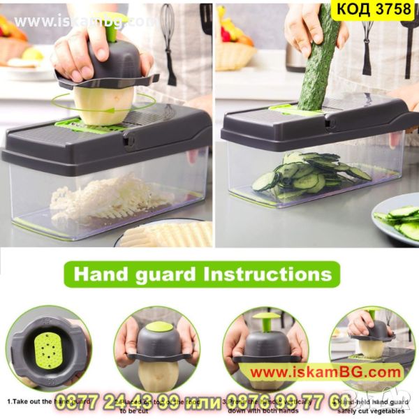 Останалата част от уреда е направена от качествена и добра пластмаса, така че да предпазва от наранявания. Има и слайсер, с който ще поддържате чистотата в кухнята си безупречна дори след използването на рендето! За допълнително улеснение има и контейнер, който събира отцеждат се вода, ако хранителните продуктите са измити. А специалната дръжка която е включена ще Ви предпази от порязване докато използвате мултифункционалното ренде.