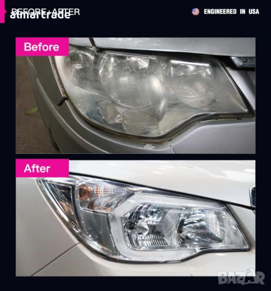 Възстановява замъглени, пожълтели и силно замърсени фарове като ги прави като нови. Изчиства лещата за фаровете и добавя защитен уплътнител в една лесна стъпка. Не са необходими шкурка или шлайф машини. Уникалната комбинация на Flamingo от полиращи съединения и уплътнители прави запазването на фаровете ясно и подобряване на видимостта лесно. Лесен за използване, процесът изисква само 20-30мин. , за да премахнете драскотините и да възстановите лещите. Използвайте също и на спирачни светлини, мотоциклетни предни стъкла, каски и други.