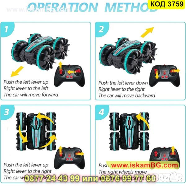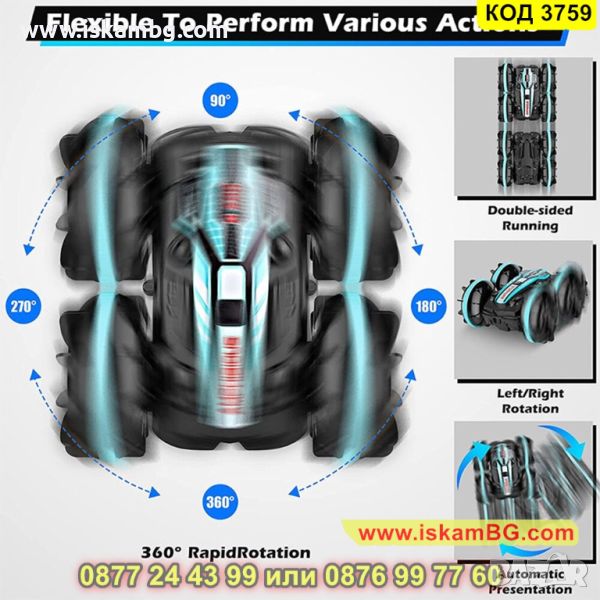 ✅ Колата с дистанционно управление със зарядно устройство е двустранна, благодарение на което продължава да се движи дори след преобръщане.