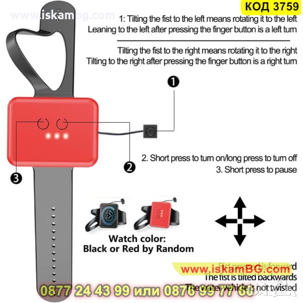 ✅ Кола, управлявана от дистанционно управление, но също и специален сензорен контролер, носен на ръка