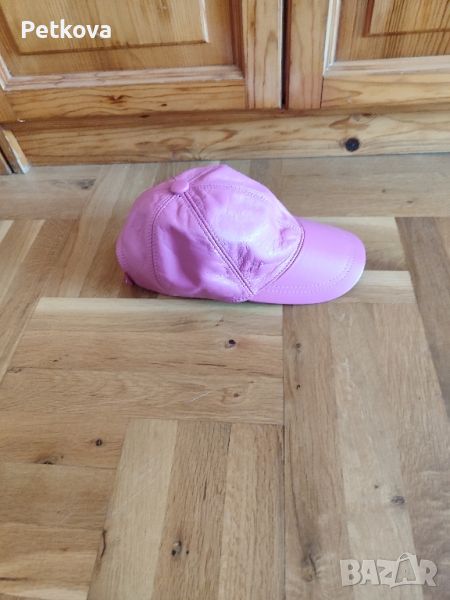 Шапката е уникална, наситено розово, слагана два-три пъти. Като нова е. Отвътре е с подплата, страхотна изработка. По етикет я дават да се пере в пералня. 100% кожа.