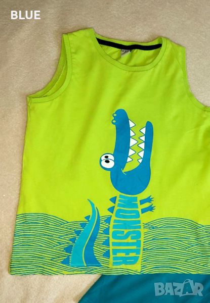 Бермуди, потник и блузка с динозавър за ръст 116-122 см. 6-7 год. Отлично състояние.