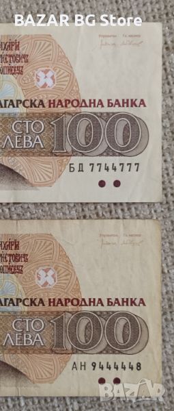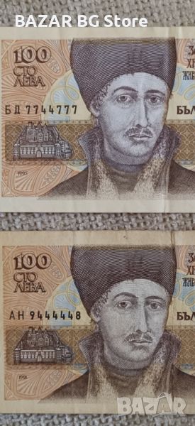 Българска банкнота 100 лева Захари Зограф. Номера АН 9444448,БД 7744777. За колекционери и ценители. → Обява 45358565