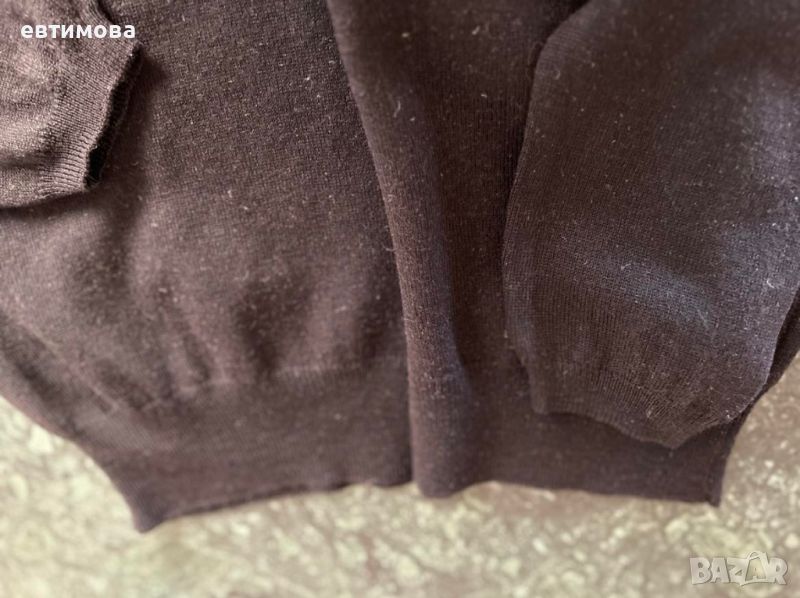 прекъсната нишка горе на левия ръкав. Може да бъде поправено, като се забримчи –