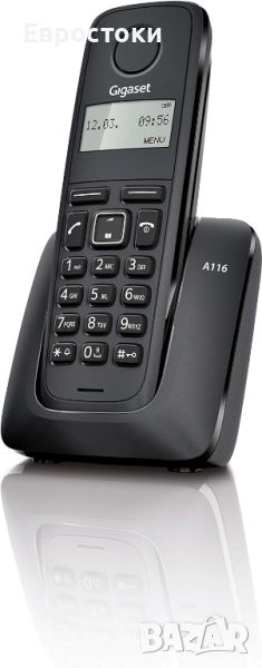 Ако търсите много прост, но надежден и качествен телефон "Произведен в Германия", открийте A116. Набирането не изисква никакво усилие благодарение на клавишите с чувствителни на натиск точки, което не е даденост при телефоните от нисък клас. Терминалът е предварително регистриран към базовата станция, което позволява бърза инсталация чрез plug & play. Това означава, че можете да започнете да използвате Gigaset незабавно без инсталация.