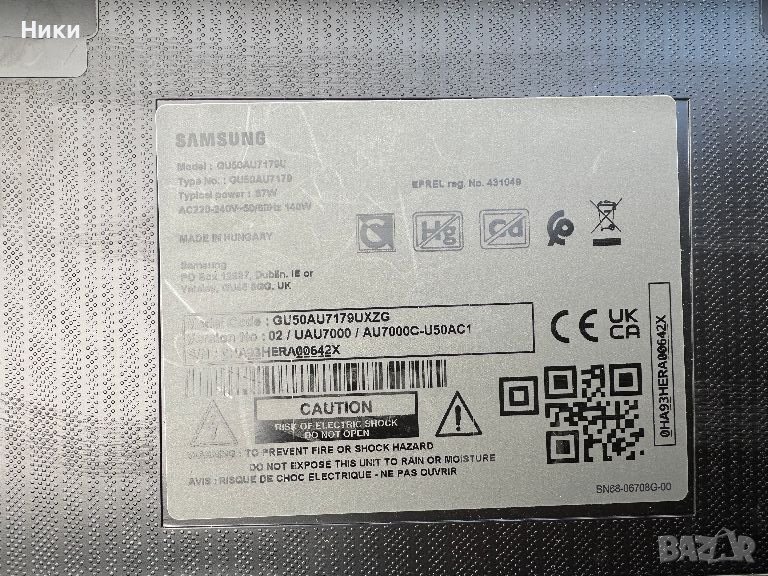 работещ телевизор Samsung GU50AU7179J със счупен дисплей модел на дисплея CY-BA050HGJR. Подсветките са 3бр. общо. Изпращам по ЕКОНТ с опция тест и преглед!!! С оглед и проба на това, че модулите нямат гаранция, след прегледа, теста и заплащането не приемам възражения