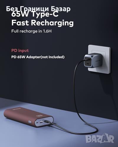 Нова 65W Бърза Зарядна Батерия: USB-C/A 20000mAh: Зарядно за Лаптоп и Телефон