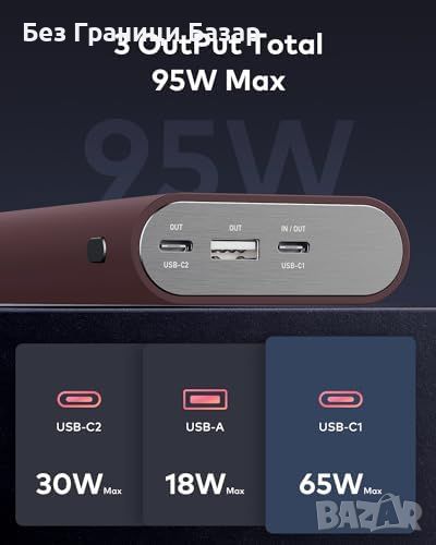 Тройно Зареждане: Възможност за едновременно зареждане на три устройства с обща мощност до 95W.