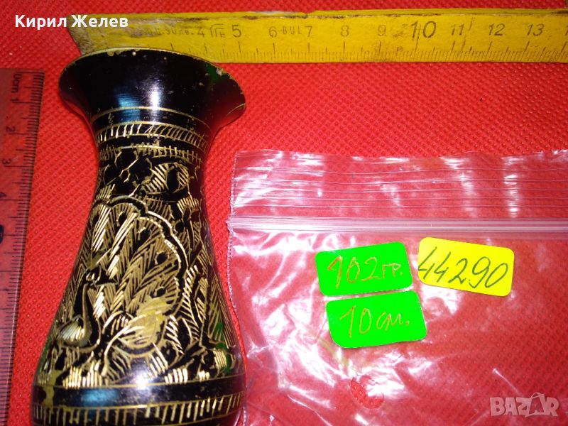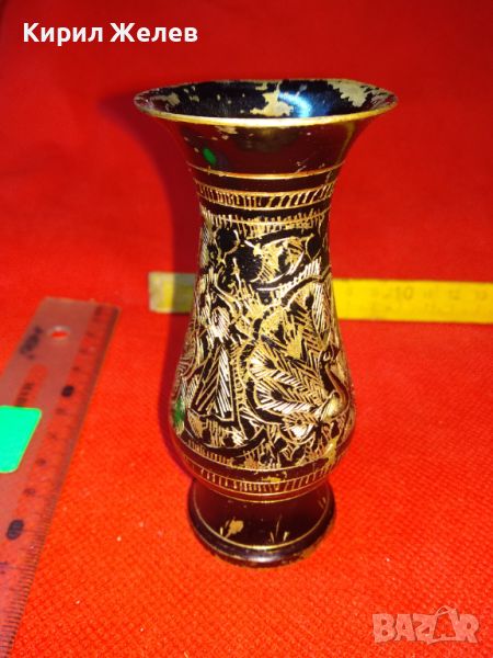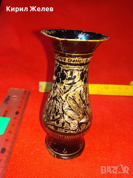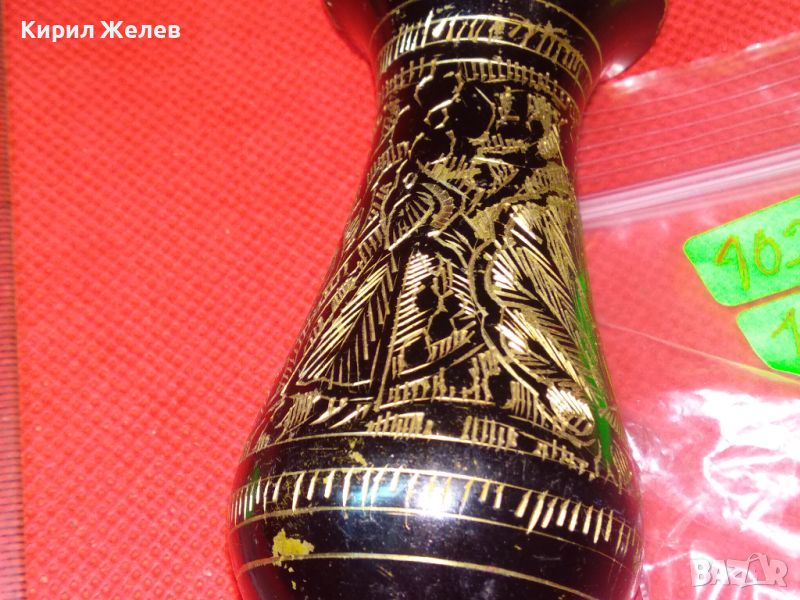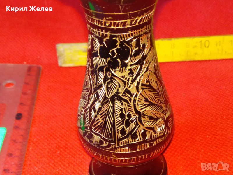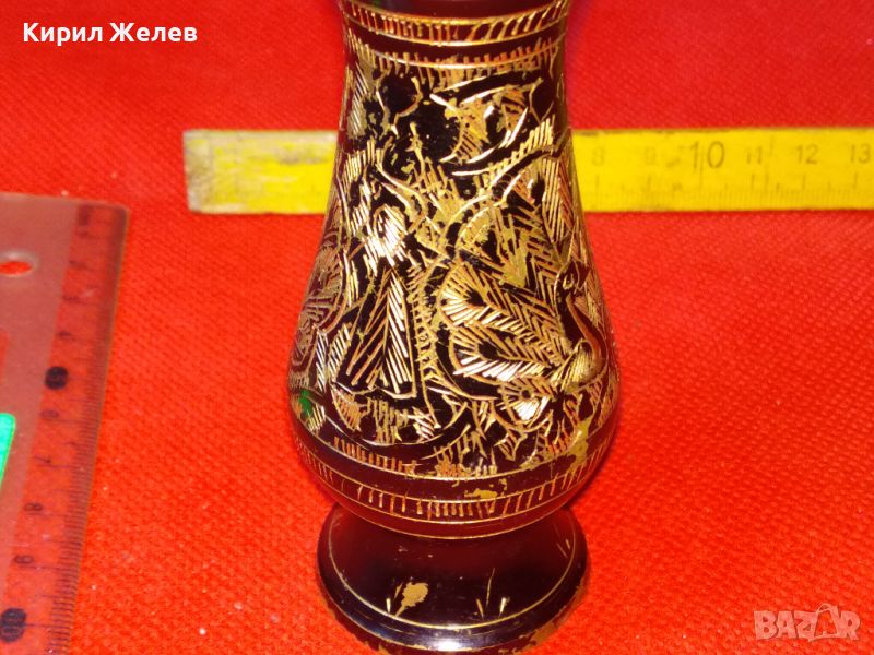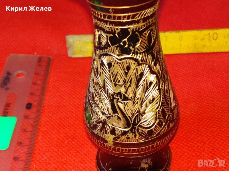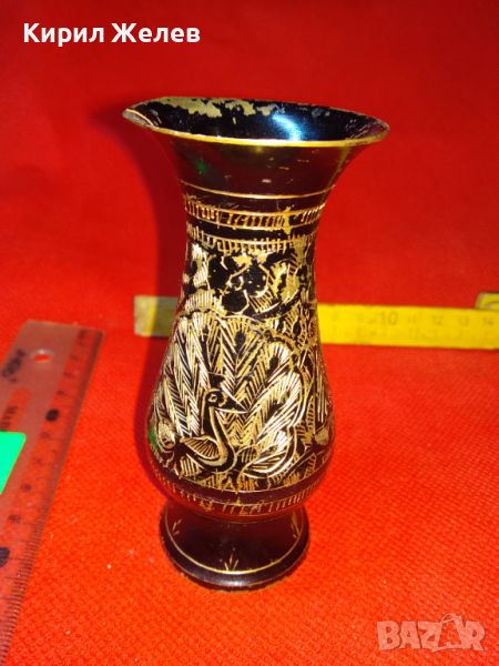 СТАРА ИНДИЙСКА ТРАДИЦИОННА БРОНЗОВА ЛАКИРАНА РЪЧНО ОРНАМЕНТИРАНА с ПАУНИ ВАЗА 44290
