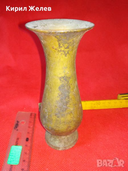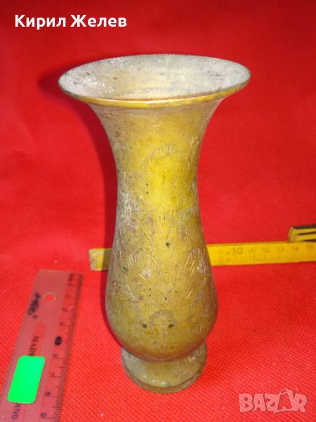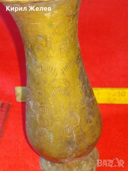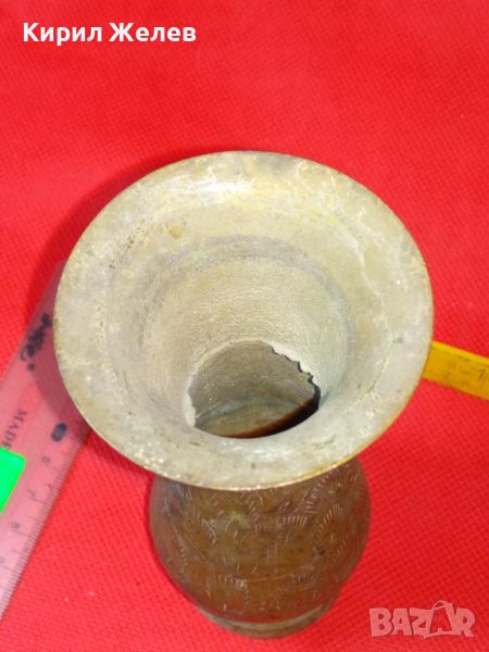 СТАРА ИНДИЙСКА БРОНЗОВА ВАЗА с РЪЧНО МАЙСТОРСКИ РЕЗБОВАНА ИНКРУСТАЦИЯ ТРАДИЦИОННА ИЗРАБОТКА 44289