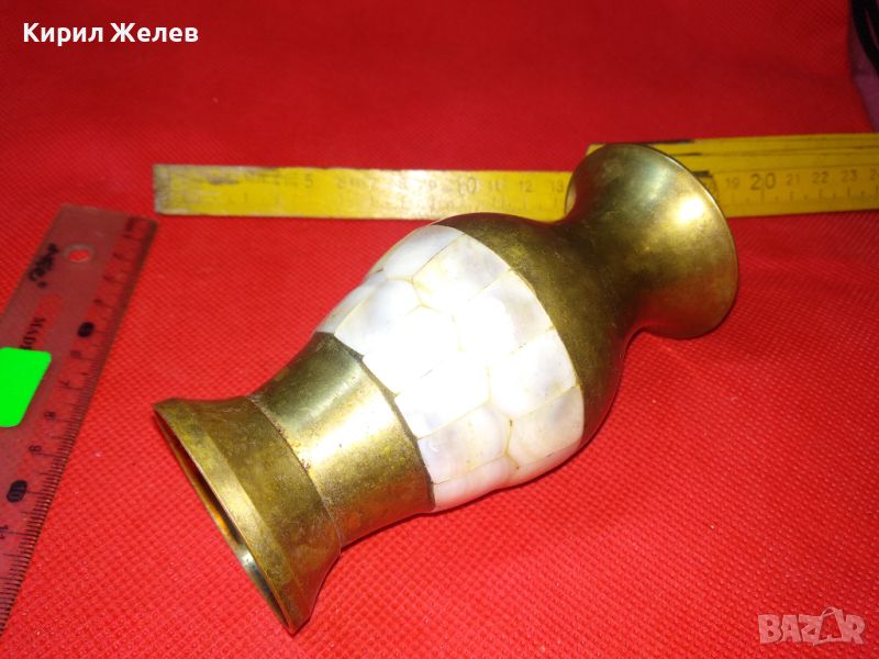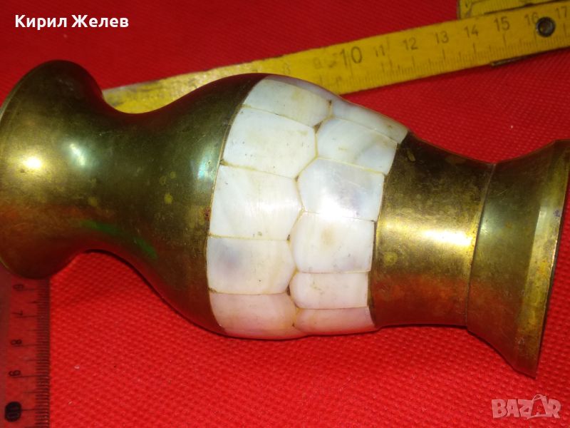 ВЕЛИКОЛЕПНА СТАРА БРОНЗОВА ВАЗА със СЕДЕФЕНИ ИНКРУСТАЦИИ МАЙСТОРСКА ЗАНАЯТЧИЙСКА РАБОТА 21457