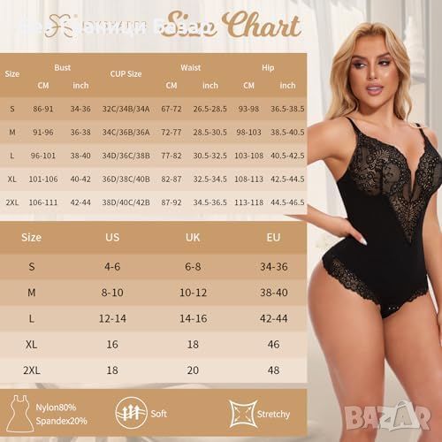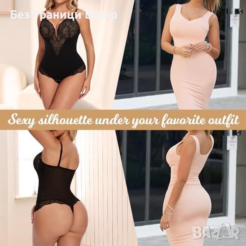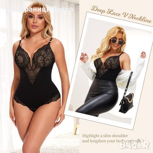 Ново Боди с дантела и V-образно деколте, контрол на корема