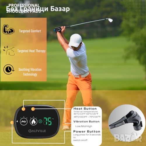 Универсален масажор за рамо: Подходящ за всякакви размери, с разширителни колани.