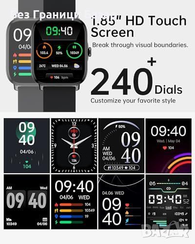 1.85" HD Дисплей: Интелигентен часовник с 1.85-инчов HD тъчскрийн и възможност за персонализация на циферблата.