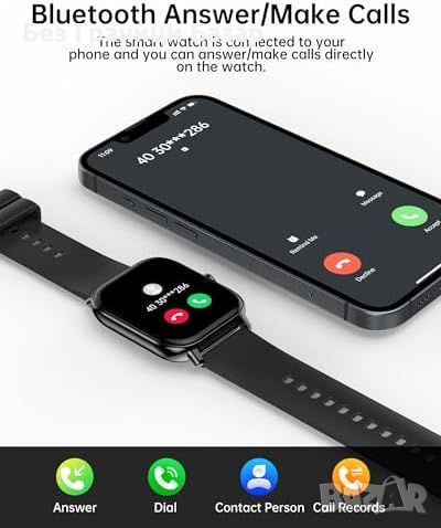 Нов Мъжки Часовник Smart Bluetooth, HD Тъчскрийн, Съвместимост iOS/Android