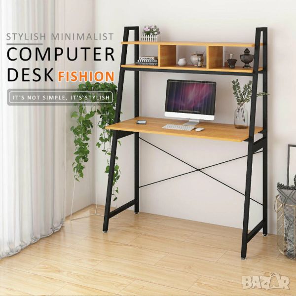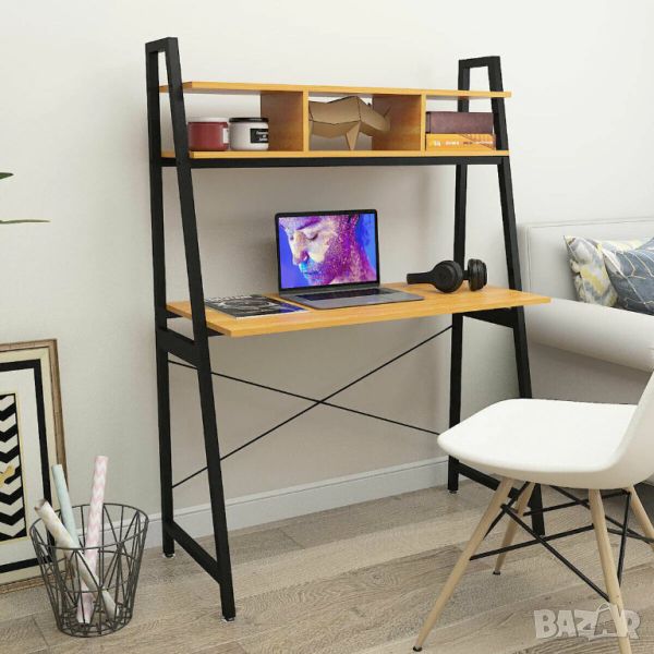 Бюро. Дървесен плот и рафт от ПДЧ с метална рамка, Писане Учебна Работна маса за игри за офис Спалня Всекидневна. Регулируеми стъпки. Всички размери са на последната снимка Получавате това което виждате (стола и декорациитв не са включени)