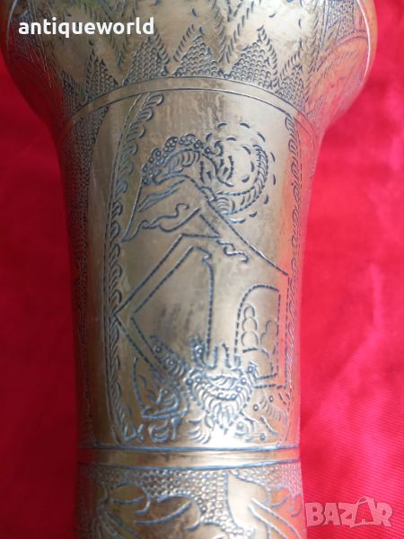 Много Красив Рядък Стар Масивен Бронзов Гравиран ПЕРСИЙСКИ Съд , Ваза.