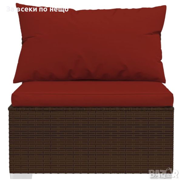 Градински лаундж комплект с възглавници 5 части кафяв полиратан