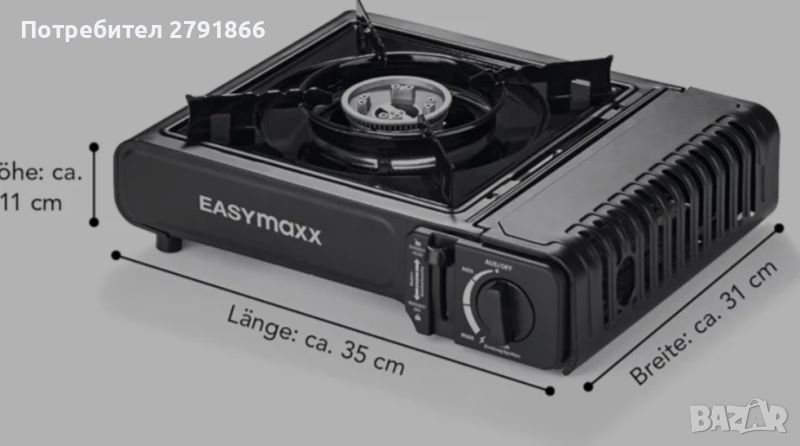 Преносима газова печка EASYmaxx | Компактна къмпинг печка с транспортна кутия + подарък флакон газ, снимка 1 - Газови котлони - 45368324 Преносима газова печка EASYmaxx | Компактна къмпинг печка с транспортна кутия + подарък флакон газ, снимка 2 - Газови котлони - 45368324 Преносима газова печка EASYmaxx | Компактна къмпинг печка с транспортна кутия + подарък флакон газ, снимка 3 - Газови котлони - 45368324 Преносима газова печка EASYmaxx | Компактна къмпинг печка с транспортна кутия + подарък флакон газ, снимка 4 - Газови котлони - 45368324 Преносима газова печка EASYmaxx | Компактна къмпинг печка с транспортна кутия + подарък флакон газ, снимка 5 - Газови котлони - 45368324 Преносима газова печка EASYmaxx | Компактна къмпинг печка с транспортна кутия + подарък флакон газ, снимка 6 - Газови котлони - 45368324 1/6
