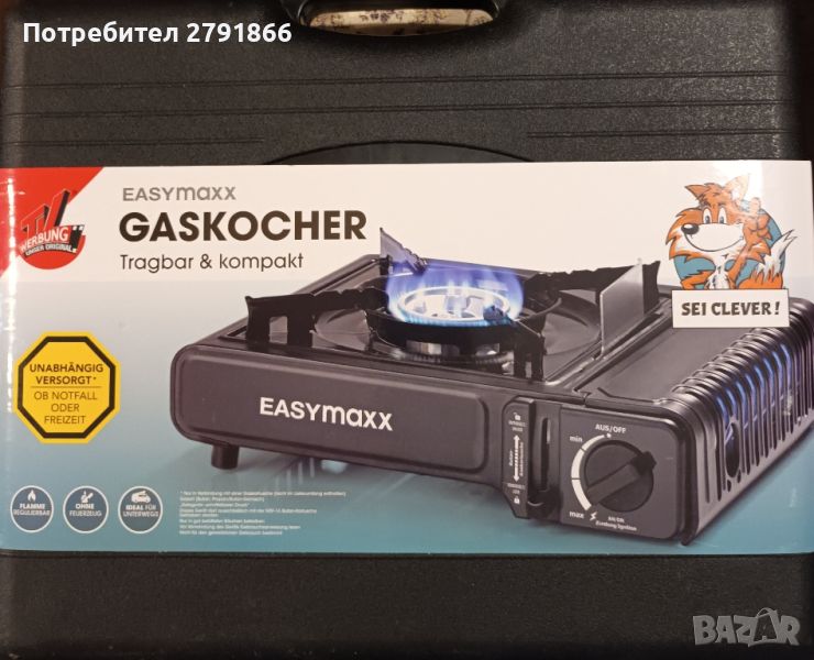 Преносима газова печка EASYmaxx | Компактна къмпинг печка с транспортна кутия + подарък флакон газ → Обява 45368324