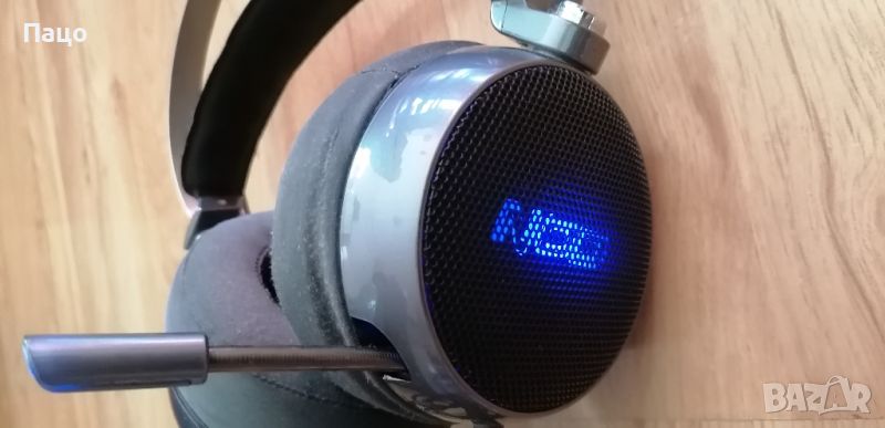 СЛУШАЛКИ С ПРИБИРАЩ СЕ МИКРОФОН, ЦВЯТ МЕТАЛИК СЪС СИН LED/Цената е твърда/символична/Без Бартери/Описание
