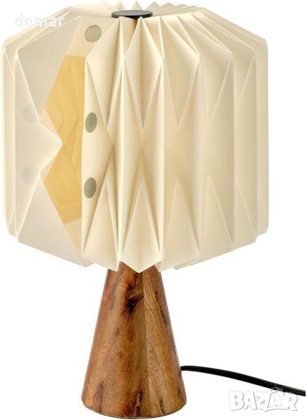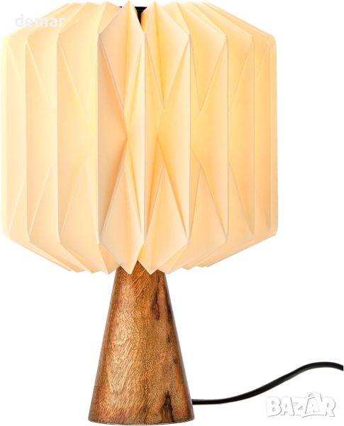 Настолна лампа от дърво и хартия Kusso Масивно мангово дърво със сгънат абажур в стил оригами