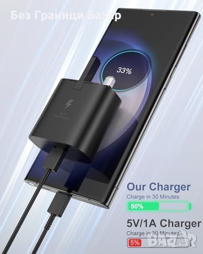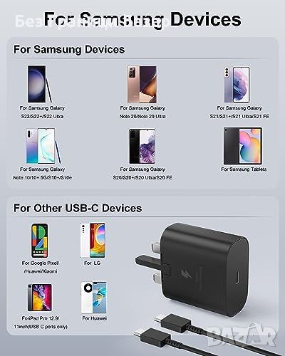 Нови 2 броя 25W Зарядно с USB C Кабел за iPhone 15 и Samsung Универсално