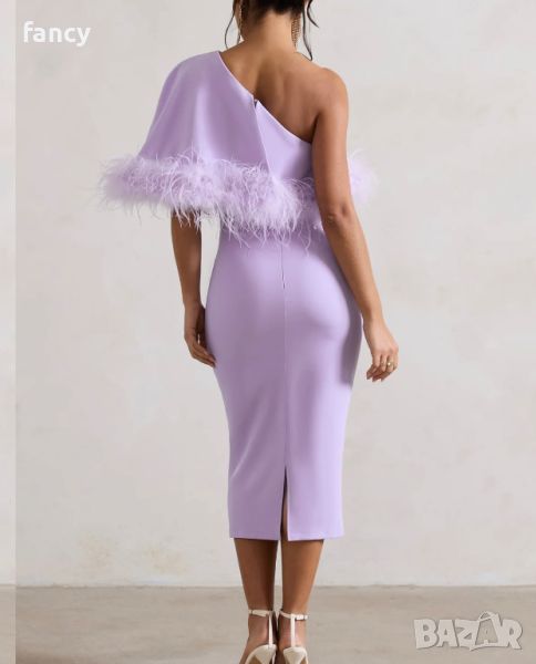 Елегантна дамска рокля с декорация от пера → Обява 45369590