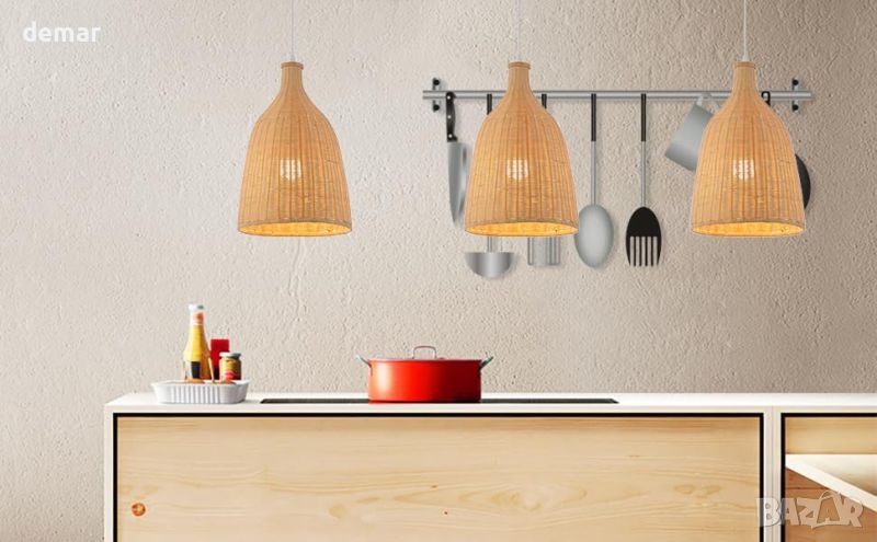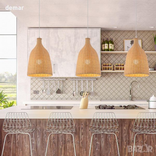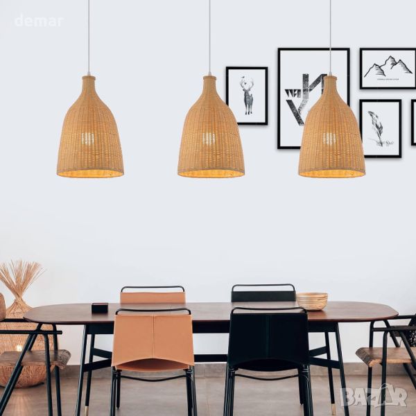 LOFOB Бохо ръчно изработена лампа от естествен плетен ратан