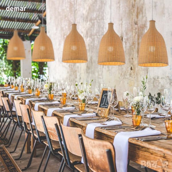 Повдигнете пространството си с LOFOB Boho ръчно изработена лампа от естествен плетен ратан. Това сложно изплетено приспособление в стил полилей добавя топлина и стил към всяка стая. Отличаващ се с ярък светлинен източник, сгушен във внимателно изработен ратанов абажур, той служи като универсална фокусна точка за различни стилове на декорация, от бохо до крайбрежен, осигурявайки както стил, така и атмосфера без усилие.