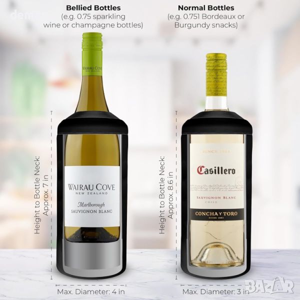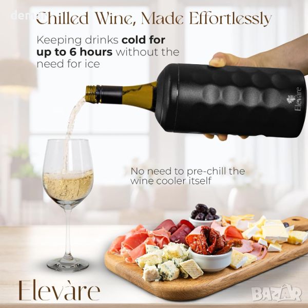 Охладител за вино Elevàre, революционно решение, изработено от висококачествена неръждаема стомана 304 с изолация с двойни стени, което гарантира, че вашето вино, просеко и шампанско остават охладени до 6 часа без неприятностите с лед или честите пътувания в хладилника. Универсалното му прилягане побира различни бутилки от 750 ml, докато елегантният му дизайн съчетава функционалност със стил, добавяйки изтънченост към всяка сервировка на масата. Лек и здрав, той е идеален за събития на открито, докато включената запушалка за вино от неръждаема стомана и шикозната опаковка в туба го правят идеален подарък за винени ентусиасти.