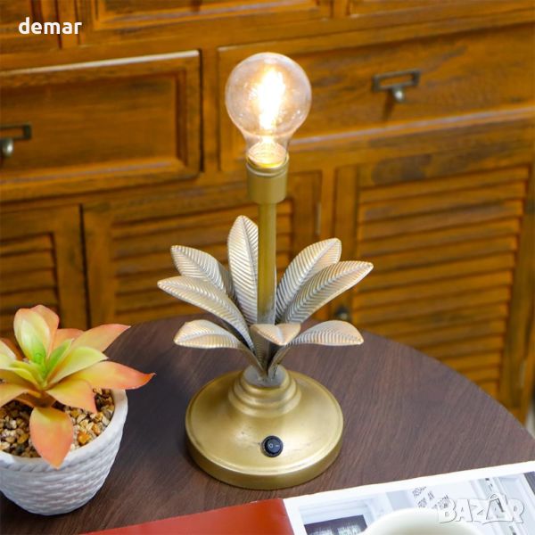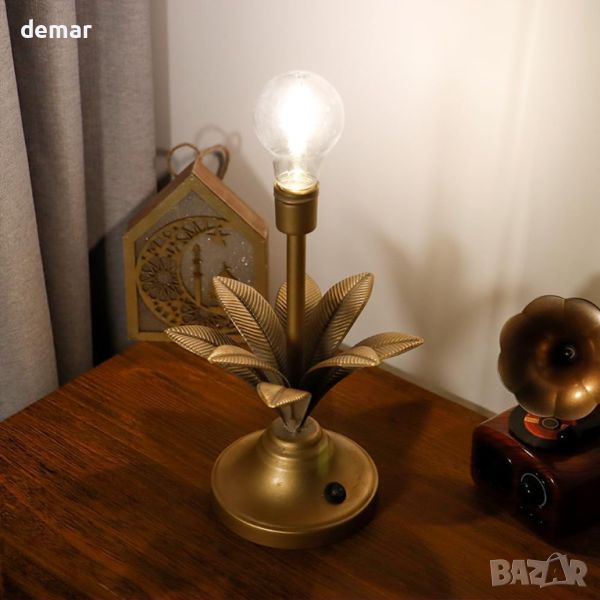 JHY DESIGN Винтидж декоративна безжична лампа с LED крушка настолна (антично злато)