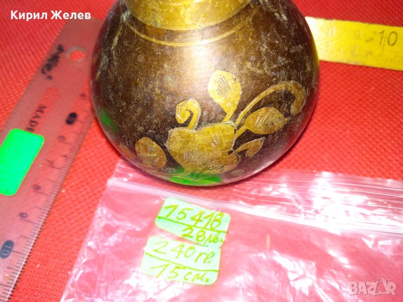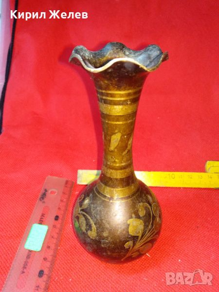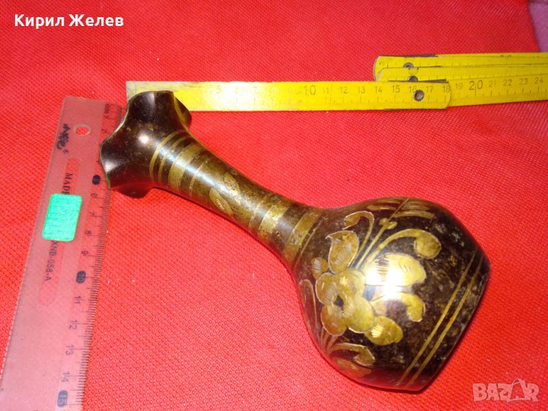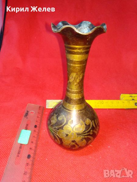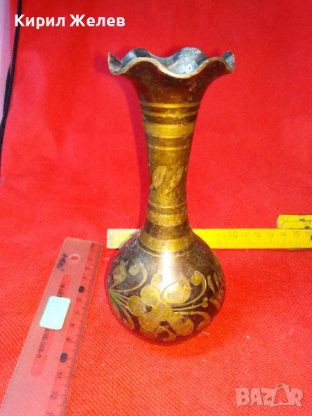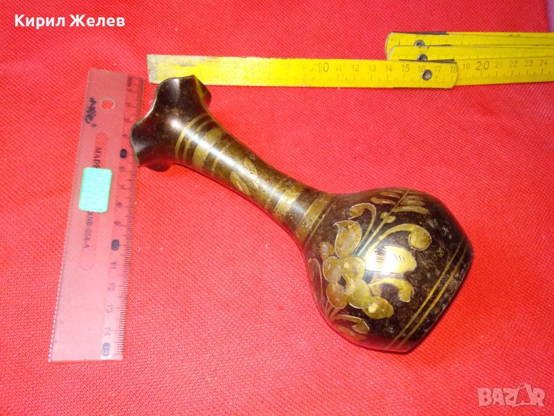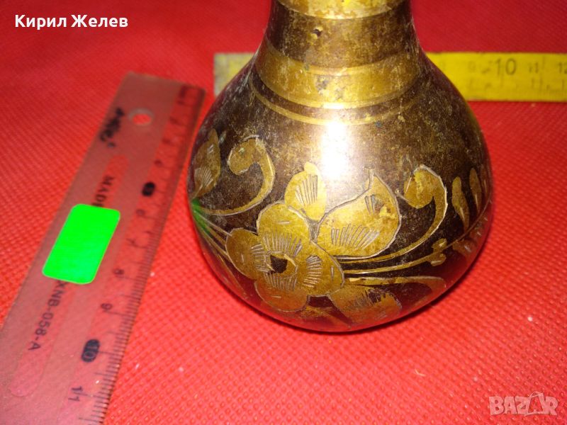 СТАРА КРАСИВА ИНДИЙСКА ТРАДИЦИОННО РЪЧНО ФЛОРАЛНО ОРНАМЕНТИРАНА БРОНЗОВА ВАЗА ЛАКИРАНА 15418