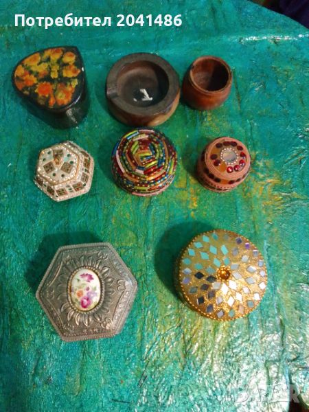 4 индийски кутийки за сватбени бижута с цени 15,12,12и 6 лева.2дървени пепелничета с цени 20 и 12лева.Страхотна шестоъгълна метална кутийка за бижута с красива керамична украсаАналогична се продава за 100 лева, моята цена е 55 лв. Кутийката е цветята струва 16 лв.При закупуване на повече предмети ще направя отстъпка . Моля чувствайте се поканени да прегледате и другите ми обяви.