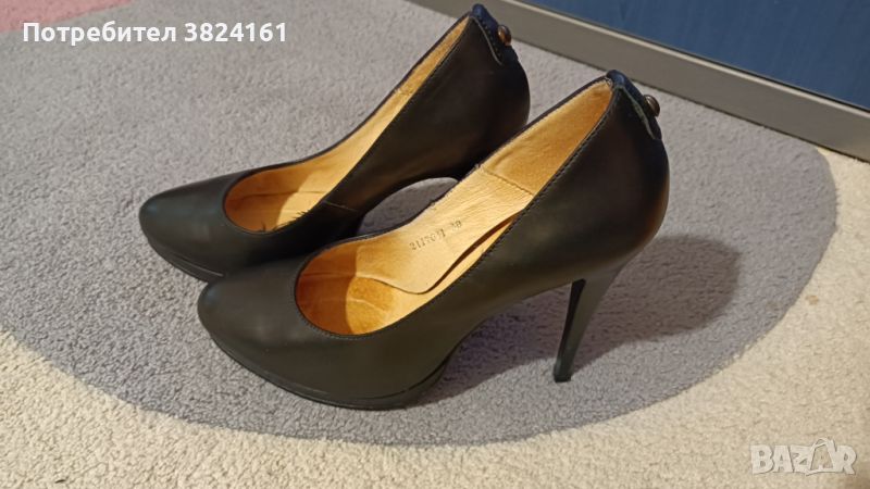 Елегантни дамски обувки естествена кожа. Размер 38, черни на цвят.