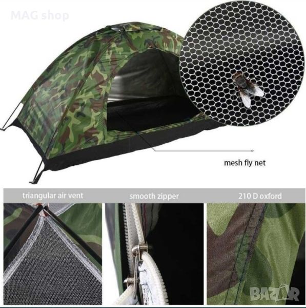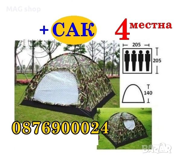 ПРОМО! ГОЛЯМА Четириместна палатка къмпинг Камуфлажна + ЧАНТА