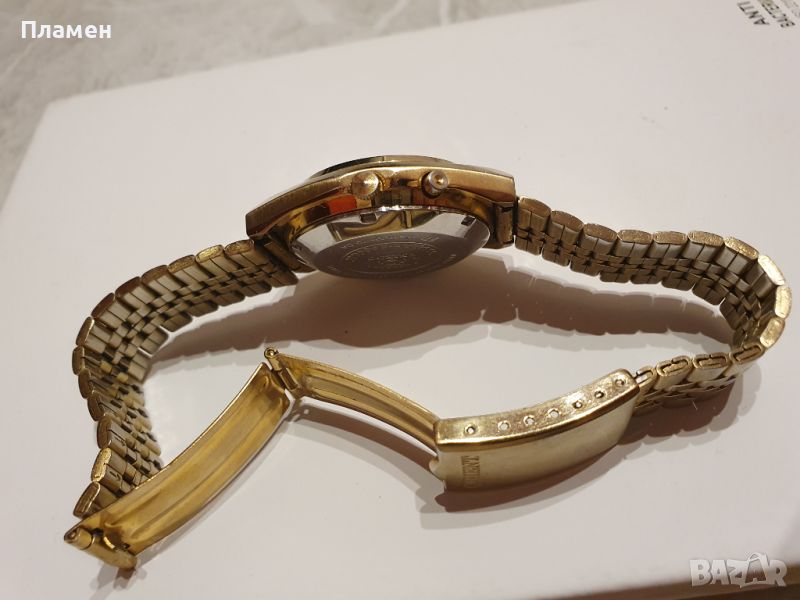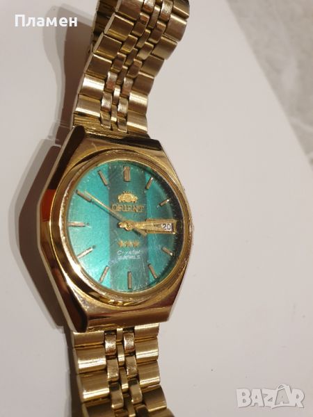 Продавам часовник Orient. Един от първите оригинални часовници от 90 те години. Механичен механизъм без батерия. Кристално стъкло със фосфорен циферблат. Не пропуска вода. Не е отварян. Трипластово позлатен. Не е загубил своето покритие въпреки годините си.