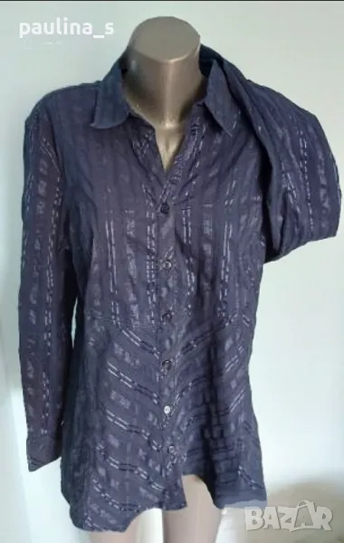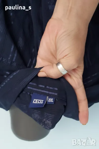2️⃣. XL / 4XL / Маркова еластична риза "Cecil" / гигант размер. Цената е крайна 39,99лв / 20 евро. Една бройка. Синя маркова еластична и много елегантна риза с втален силует. Моделът се вижда добре на снимките с отворената бленда, цветът е navy blue, със сатениран акцент. Нова е, без дефекти и етикет, има еластичност и покрива няколко размера, посочени са. Една бройка е!