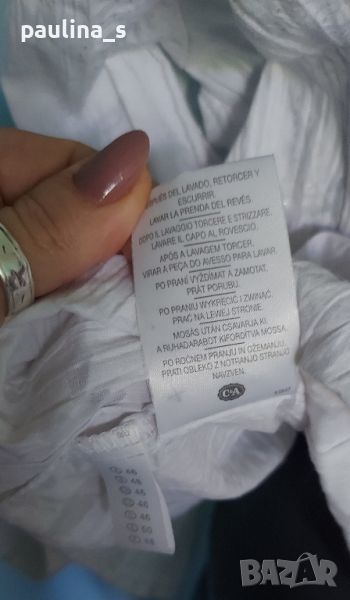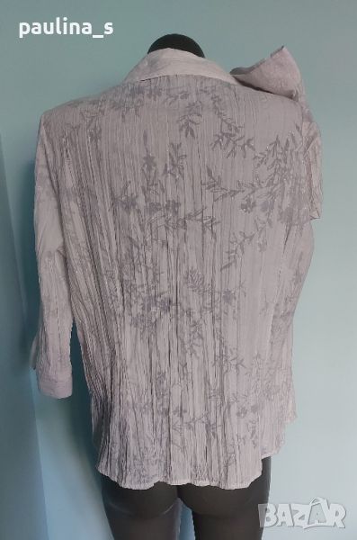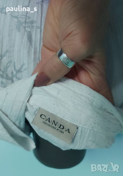 1️⃣. 2XL / 3XL - "CANDA". Цената е крайна 44,99лв / 22,5 евро. Разкошна бяля риза в Армани стайл (намачкан ефект) с прозрачен флорален принт и акцент от блестящи места. Леко втален силует, разкошна е. Ръкавите са 7/8 с маншети, декорациите на бието са много красиви. Нова е, без дефекти и етикет, една бройка. Има еластичност и покрива няколко размера, посочени са.