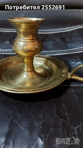 Масивен бронзов/месингов/ свещник с дръжка. Дължина-17см. Височина- 9см.