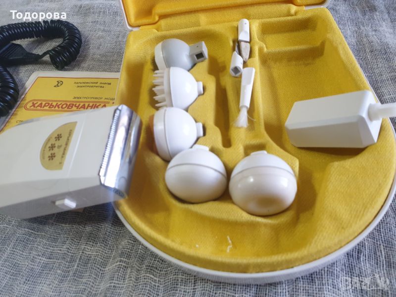 Ретро руски комбиниран уред "Харьковчанка 3 ".Неупотребяван ,включващ приставки за самобръсначка ,масажьор и маникюр.