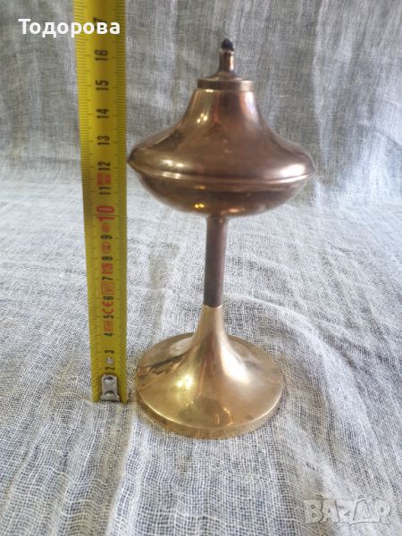 Стилна бронзова лампа.Работеща със спирт или газ.Височина- 18 см.