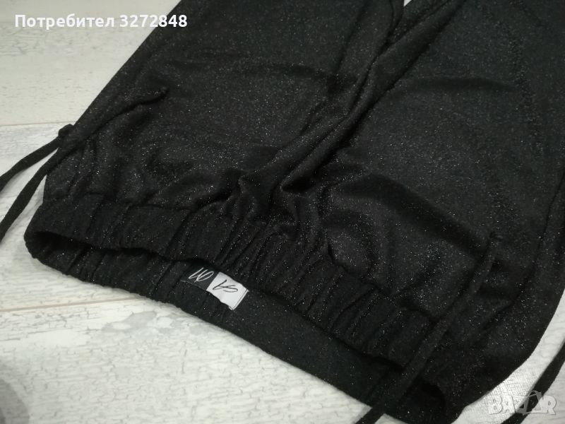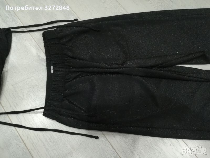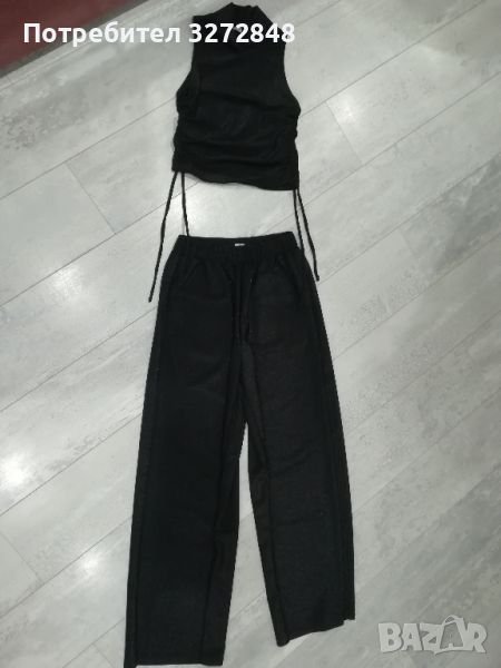 Модерен дамски комплект от широк панталон и къс потник → Обява 45382447