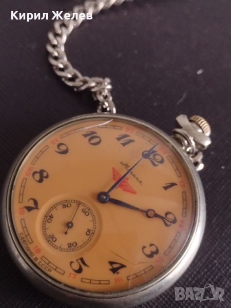 Джобен часовник МЪЛНИЯ СССР ЛОКОМОТИВ с верижка рядък за КОЛЕКЦИОНЕРИ 42422
