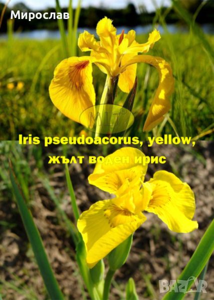 Продавам жълт воден ирис на цена от 0,99 евро за коренче (стрък). Оферти: 2 броя за 1,60 евро, 3 броя за 2 евро, 5 броя за 3 евро. Снимките на растенията са реални, цъфтящите на снимките са миналогодишни (така ще изглеждат скоро), като